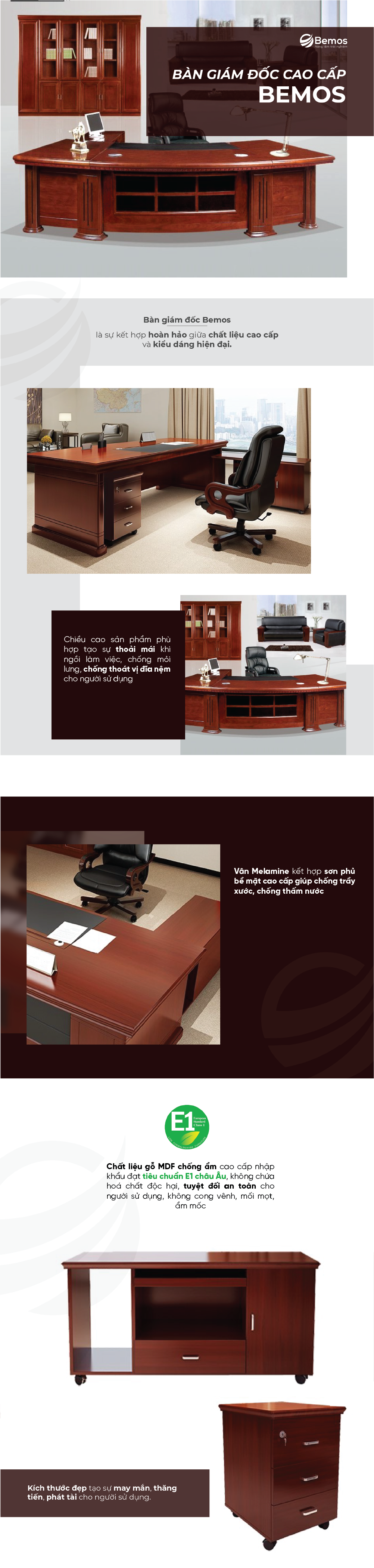 Bàn giám đốc BMG 10034 không chỉ đơn thuần là một sản phẩm nội thất mà còn là biểu tượng của sự tinh tế và đẳng cấp. Với sự kết hợp hài hòa giữa đường nét hiện đại và sự sang trọng, bàn giám đốc này là một điểm nhấn độc đáo trong không gian làm việc. Sự chăm chút đến từng chi tiết, từ cách sắp xếp các ngăn kéo, kệ đựng, đến việc tinh chỉnh tỉ mỉ các đường cong, tạo ra một sản phẩm không chỉ thực tế mà còn thể hiện phong cách và cá tính của người sử dụng. Với sự đa dạng trong thiết kế và tính năng, bàn giám đốc này không chỉ là nơi làm việc đáng ngưỡng mộ mà còn là một tác phẩm nghệ thuật đem lại sự hài lòng tối đa cho mọi khách hàng.