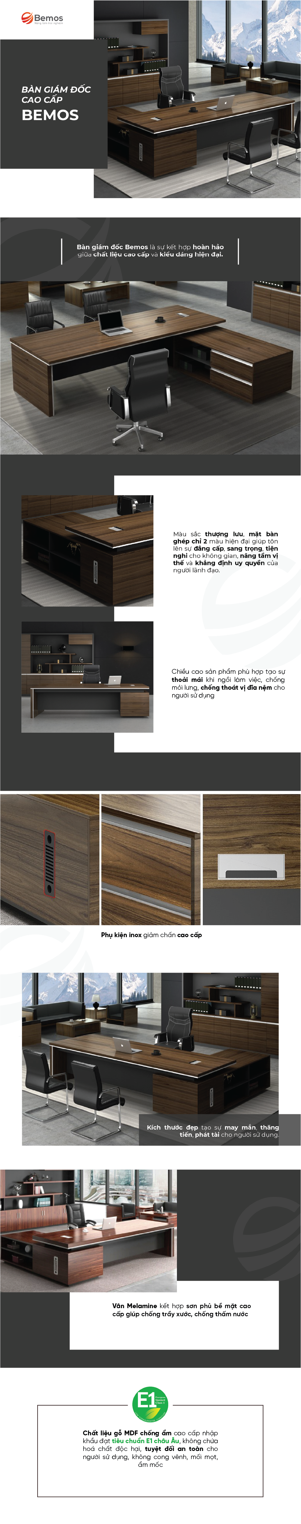 Bàn giám đốc BMG 10041 không chỉ đơn thuần là một sản phẩm nội thất mà còn là biểu tượng của sự tinh tế và đẳng cấp. Với sự kết hợp hài hòa giữa đường nét hiện đại và sự sang trọng, bàn giám đốc này là một điểm nhấn độc đáo trong không gian làm việc. Sự chăm chút đến từng chi tiết, từ cách sắp xếp các ngăn kéo, kệ đựng, đến việc tinh chỉnh tỉ mỉ các đường cong, tạo ra một sản phẩm không chỉ thực tế mà còn thể hiện phong cách và cá tính của người sử dụng. Với sự đa dạng trong thiết kế và tính năng, bàn giám đốc này không chỉ là nơi làm việc đáng ngưỡng mộ mà còn là một tác phẩm nghệ thuật đem lại sự hài lòng tối đa cho mọi khách hàng.